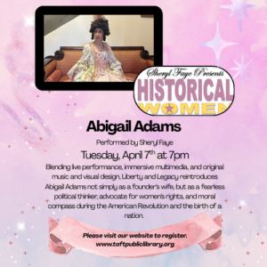 Abigail Adams is coming to The Taft Public Library, Mendon, MA